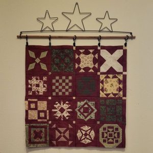 So, instead, I decided to really celebrate the completion of this section. I’ve got a small quilt hanger my sister got me a few years ago, but I rarely have anything totally completed to put on it.